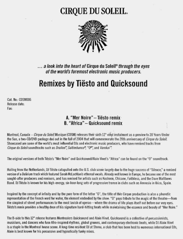 Label: Cirque Du Soleil Musique